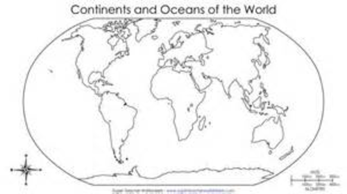 Continent and Ocean Map Worksheet Blank - Amped Up Learning Product Description. Continent and Ocean Map worksheet can be used as a worksheet as well as a pretest and post test to assess students knowledge. Student can label and then color the different continents and oceans in order to learn this section of the AKS. Store: Samantha Mihalak.