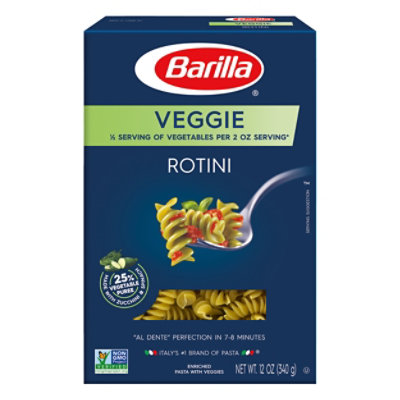 Barilla Veggie Pasta, Spaghetti Pasta, 12 Ounces (Pack of 20) Serving Size: Six 2 ounce servings of vegetable spaghetti pasta per box 3.5 oz. of vegetable spaghetti provides 20% of the daily recommended amount of veggies for your diet Barilla's vegetable pasta is non-GMO verified, kosher certified, product of USA, and tastes great New (12) from $65.88 & FREE Shipping. Barilla Veggie Pasta, Rotini, 12 oz 2,269