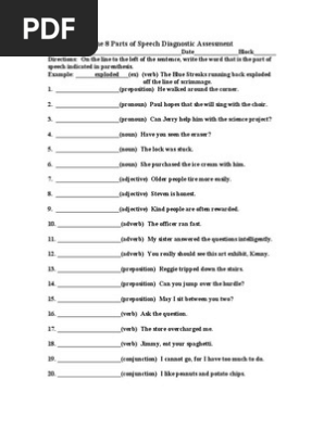 The 8 Parts of Speech Diagnostic Assessment | PDF The 8 Parts of Speech Diagnostic Assessment - Free download as PDF File (.pdf), Text File (.txt) or read online for free. ..