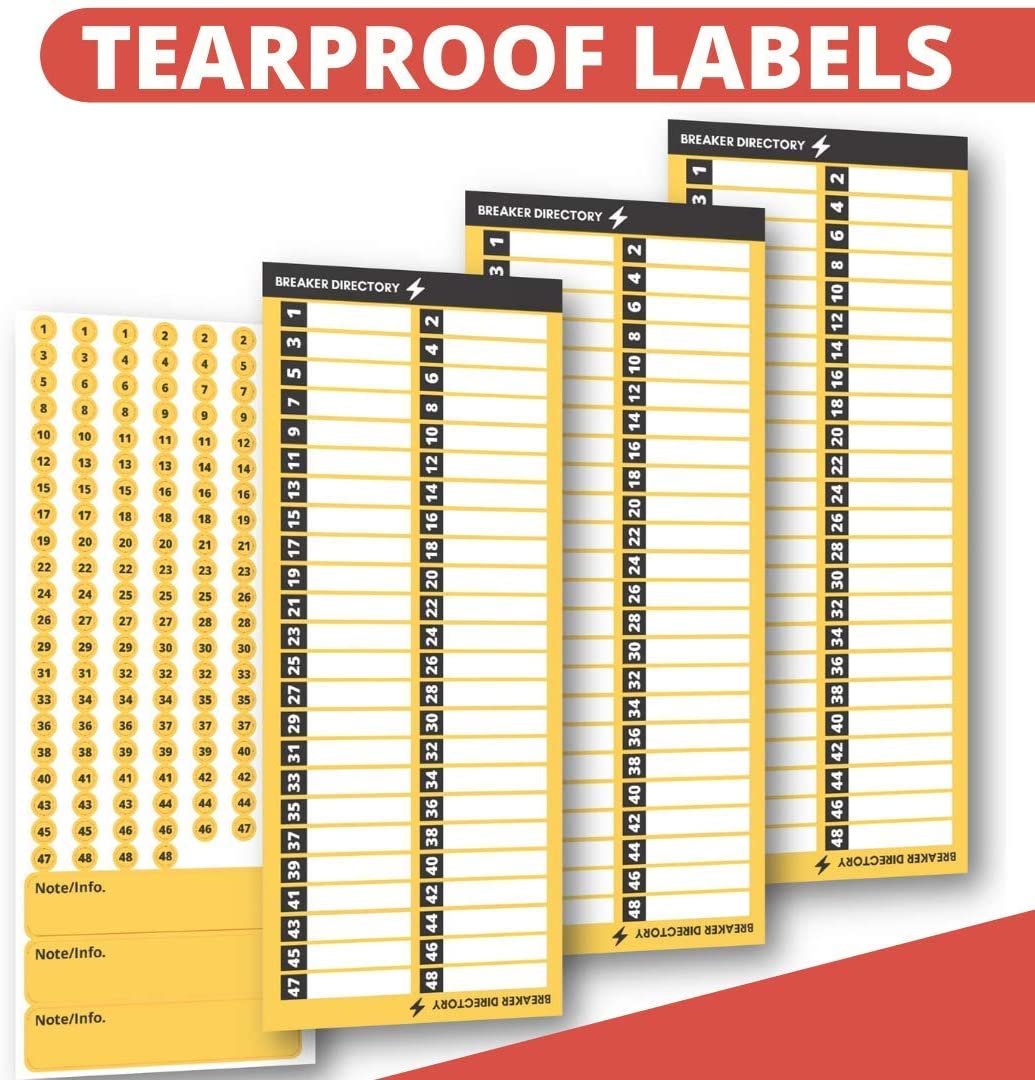 4 Pieces Circuit Breaker Directory Label Sticker Load Center Identification Sticker Adhesive Electrical Panel Sticker Breaker Number Sticker for Door ...