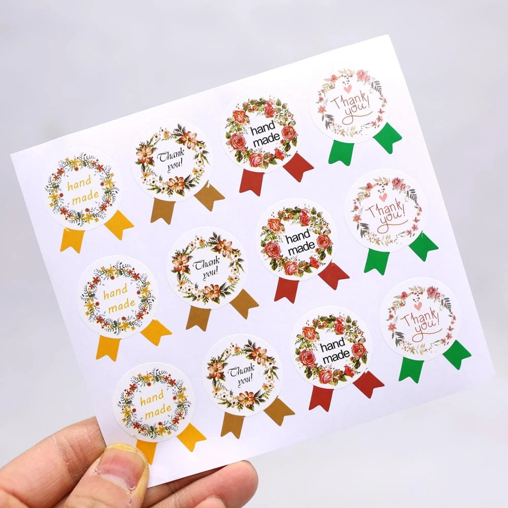 Karangan Bunga Bunga Buatan Tangan Stiker, Terima Kasih Label Stiker Hadiah Kertas Label Stiker dekorasi Label Stiker Segel 120 Pcs/lot