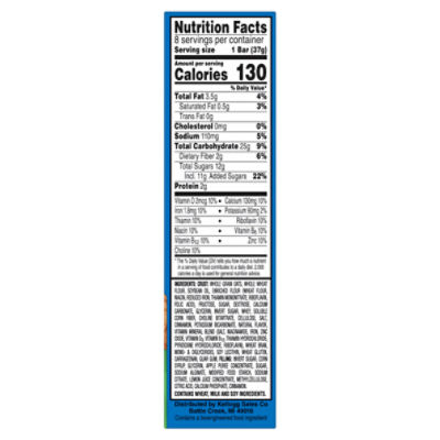 Kellogg's® Nutri-Grain® Soft Baked Breakfast Bars Apple ... Company, Brand. & Sustainability ; Amount Per Serving. Calories, 150. Amount/Serving, % Daily Value*. Total Fat, 3.5 g, 4%. Saturated Fat, 0.5 g, 3%. Trans Fat ...