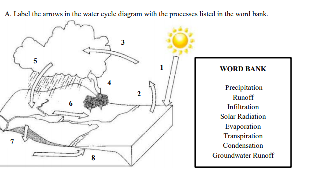 Water Cycle Worksheets - Math Worksheets 4 Kids Included here are ample water-cycle-process-diagram charts with clearly marked stages and water cycle printable worksheets to identify and label the steps involved in the water cycle. Learn the hydrologic cycle vocabulary, match the terms with their definitions and much more. Make headway with our free water cycle worksheets and charts! Label the water cycle diagram - Brainly.com Label the water cycle diagram . - 17576282. naeee1151 naeee1151 09/14/2020 Biology High School answered Label the water cycle diagram . 1 See answer