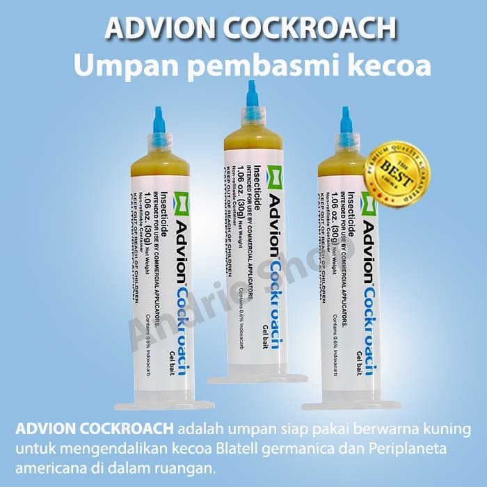 Advion Syngenta Cockroach Gel Bait 1 clam shell (4 Tubes) Apply Advion Roach Bait Gel as a crack and crevice treatment indoors and outdoors in commercial, residential, and industrial sites. Active Ingredient: Indoxacarb, 0.6% Target pests: German, American, Australian, Smoky-Brown, Brown, Asian, and Brown-Banded species of cockroaches Pet safe: Yes, when used as directed Yield: - 3 to 5 spots of gel ... Amazon.com. Spend less. Smile more. Amazon.com. Spend less. Smile more.