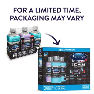 Pedialyte® Products Designed for athletes, Pedialyte Sport Powder Packs are formulated with 5 key electrolytes for fast, on-the-go rehydration and muscle support before, during, and after exercise. View Product Information > Pedialyte ® Classic Powder Packs A convenient way to help prevent dehydration † in adults and children over 1 year of age.