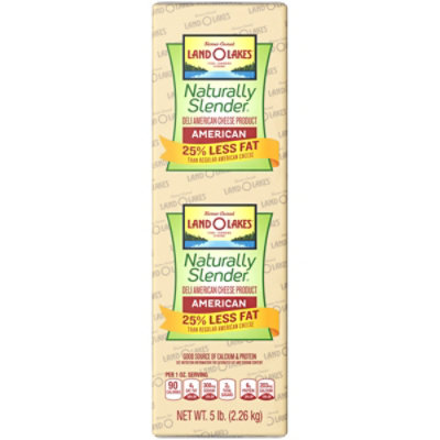 Land O Lakes Naturally Slender Reduced Fat White American Cheese 5 lb ... Land O Lakes Naturally Slender Reduced Fat White American Cheese 5 lb. Solid Block - 2/Case Mix & Match Discounts Quantity Discounts Buy 4 or more $46.63 /Case Wish List Rapid Reorder Pasteurized processed white american cheese with mild cheese flavor Mild taste pairs well with virtually any sandwich Perfect for delis, cafes, and diners