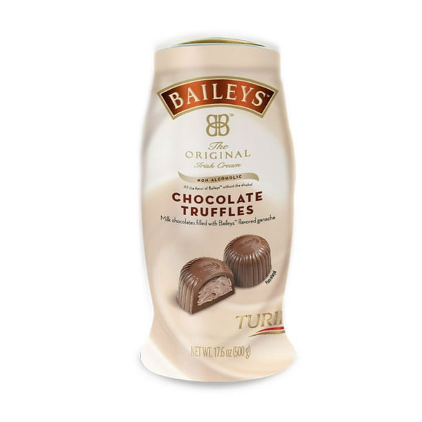 Baileys The Original Irish Cream Non Alcoholic Chocolate Truffles 1lb ... World famous BAILEYS IRISH CREAM flavored ganache encased in decadent milk chocolate! Approximately 48 luscious individually wrapped pieces in each "bottle"! All the flavor or BAILEYS without the alcohol making these the perfect chocolates for children and adults!