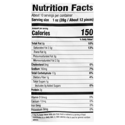 Takis Waves Fuego Wavy Potato Chips - 2.5oz : Target Total Fat 22g 28% Saturated Fat 3g 15% Trans Fat 0g Polyunsaturated Fat 6g Monounsaturated Fat 13g Cholesterol 0mg 0% Sodium 890mg 39% Total Carbohydrate 37g 13% Dietary Fiber 4g 14% Sugars 0g Added Sugars 0g 0% Protein 5g Vitamin D 0mcg 0% Calcium 26mg 2% Iron 0mg 0% Potassium 1097mg 25%