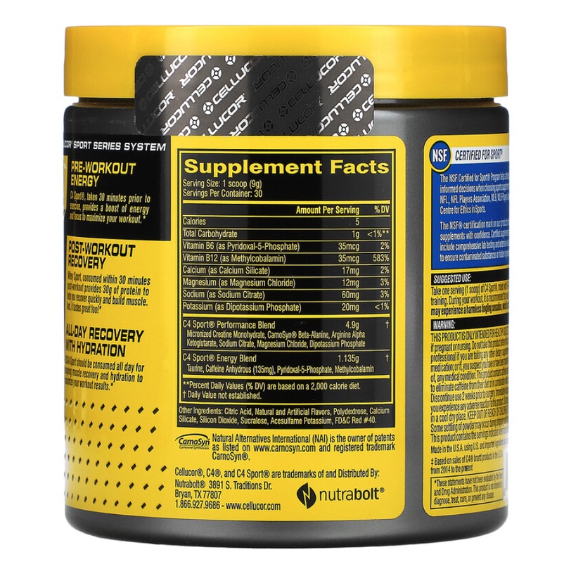 cellucor.comCellucor® | Pre-Workout Brand & Sports Nutrition Supplements ... †Based on sales of all C4® brand products in the U.S.A. from 2014 to the present. ‡When combined with an effective diet and resistance training program, for at least 8 weeks *These statements have not been evaluated by the Food and Drug Administration. › p › cellucor-c4-sport-pre-workoutCellucor C4 Sport Pre-Workout Powder - Blue Raspberry - 9.5oz Every tub of C4 is the result of rigorous testing and research to ensure you get the highest-quality product possible, without compromise. Our commitment to the following areas makes Cellucor stand above the pack: Flavor: We put every flavor of C4 through 100s of flavor tests. Seriously. And we don't settle. If a flavor doesn't measure up, we ... › articles › c4-pre-workoutC4 Pre-Workout review 2022: What to know - Medical News Today May 23, 2022 · C4 Pre-Workout supplements are a product line by Cellucor, a company that sells fitness equipment, drinks, and supplements. Due to the high caffeine content, C4 Pre-Workout supplements are ...