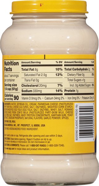 Ragu alfredo sauce nutrition label. Macaroni and cheese - Wikipedia WebMacaroni and cheese (also called mac and cheese in Canada and the United States and macaroni cheese in the United Kingdom) is a dish of cooked macaroni pasta and a cheese sauce, most commonly Cheddar sauce.. The traditional macaroni and cheese is a casserole baked in the oven; however, it may be prepared in a sauce pan on top of the … Olive oil - Wikipedia WebOlive oil is a liquid fat obtained from olives (the fruit of Olea europaea; family Oleaceae), a traditional tree crop of the Mediterranean Basin, produced by pressing whole olives and extracting the oil.It is commonly used in cooking: for frying foods or as a salad dressing.It can be found in some cosmetics, pharmaceuticals, soaps, and fuels for traditional oil lamps. Pasta, Sauces & Sides | Hannaford Browse Hannaford's Pasta, Sauces & Sides to begin building your online shopping list or grocery cart. Browse 1000's of fresh, local, quality products. mPerks | Meijer Digital Coupons and Rewards | Meijer WebJoin mPerks and save more at Meijer. Get digital Meijer coupons, personalized rewards, and instant savings at checkout.