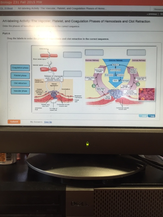 Drag the labels onto the diagram to identify steps that occur during a coagulation response.. Chemical level of organization Flashcards | Quizlet Terms in this set (40) Drag the labels onto the diagram to identify the steps in a reaction both with and without enzymes. Drag the labels onto the diagram to identify the various components of the pH scale. Drag the labels onto the diagram to identify important functional groups found in organic compounds. Solved Drag the labels onto the diagram to identify steps - Chegg Drag the labels onto the diagram to identify steps that occur during a coagulation response. Show transcribed image text Expert Answer 100% (119 ratings) Answer :) The following image is … View the full answer Transcribed image text: Drag the labels onto the diagram to identify steps that occur during a coagulation response. lab 5 - exercise 6 Flashcards | Quizlet Drag the labels onto the diagram to identify the major components of the respiratory system. 1. nose 2. nasal cavity 3. sinuses 4. pharynx 5. larynx 6. trachea 7. bronchus 8. bronchioles 9. alveoli 10. respiratory bronchioles Air entering the body is filtered, warmed, and humidified by the upper respiratory tract Week 11: Blood and Immune System Flashcards | Quizlet Drag the labels onto the diagram to identify the leukocytes. Referring to the image below, drag and drop the appropriate letters at the left to match the name of blood cells at the right. Drag the terms on the left to the appropriate blanks on the right to complete the sentences. 1. E: Red blood cell 2. A: Monocyte 3. D: Lymphocyte 4. B: Basophil