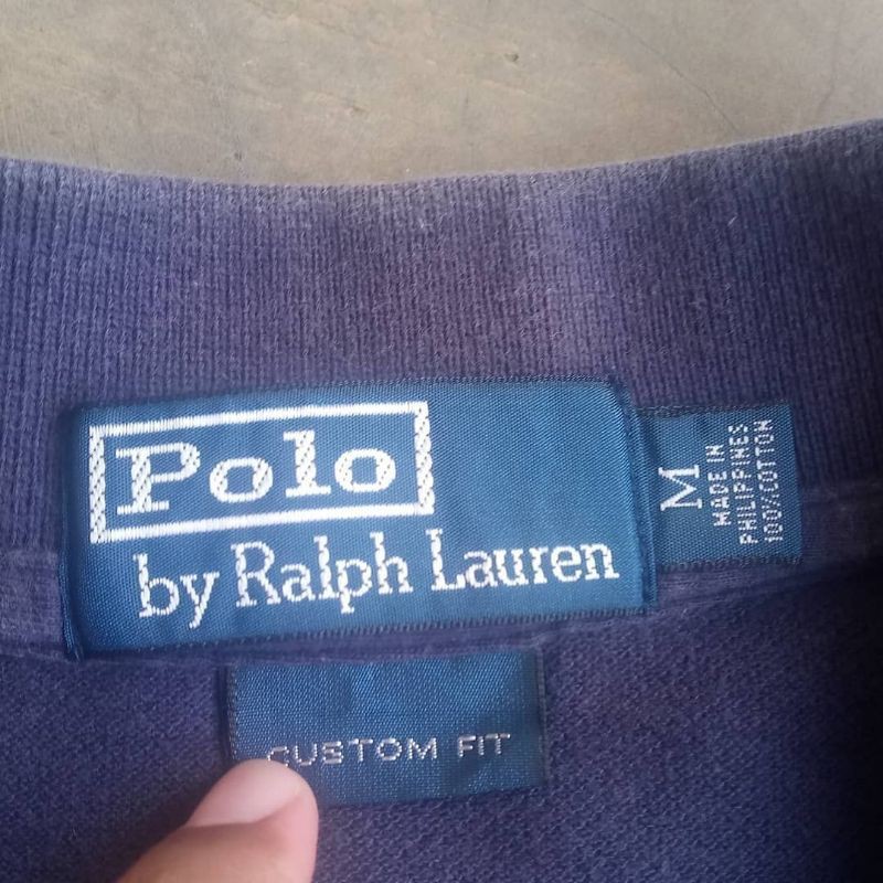 How to tell fake or genuine Ralph Lauren polo The main label of Ralph Lauren polo shirts is labeled "Polo by Ralph Lauren". To the right of the main label is a small label with the size of the polo shirt. Depending on the country of manufacture, information on the shirt's fabric such as "100% COTTON" may also be found on the label. Under the main label is a label with "CUSTOM ...
