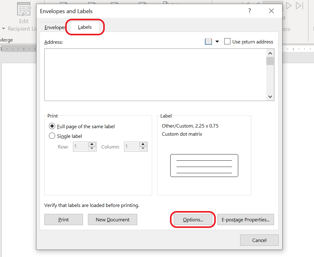 How to Print Labels From Word to a Zebra Printer | Techwalla Open Microsoft Word, click the "Tools" menu and choose "Letters and Mailings" from the menu. Choose "Envelopes and Labels" and click the "Labels" tab. Advertisement Step 5 Click on "Options" and choose the label the same size as the labels loaded in your Zebra printer. Printing from MS Word - zebratechnologies.force.com From the Layout tab, click Margins and select Custom Margins. Set the Top, Bottom, Left, and Right margins to 0. Click OK. Now, the page is ready to print: Once the design is ready click File, click Print, and then select the ZDesigner driver. If all details are correct, click Print: This will be the result after printing: Helpful Information: