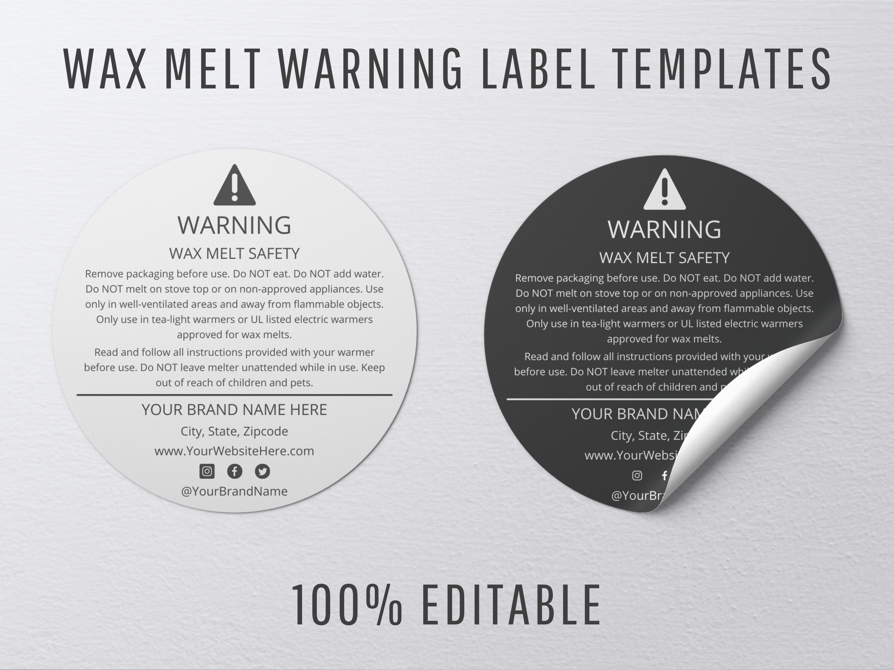 Wax Melt Warning - Etsy Results 1 - 40 of 414 ... Wax Melts Warning Label Editable Template, Printable Wax Tarts Safety Sticker, 1.5" 2" 3" Round Warning Labels Canva Template. TDS-06.