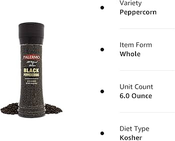 Palermo Black Peppercorn with Grinder, Kosher, All Natural, No ... Amazon.com : Palermo Black Peppercorn with Grinder, Kosher, All Natural, No Additives, 6oz : Grocery & Gourmet Food. PALERMO BLACK PEPPERCORNS | #short | LATS MIA - YouTube Oct 17, 2021 ... PALERMO BLACK PEPPERCORNS | NATURAL AND ARTISAN | #short | LATS MIA. 828 views 1 year ago. LATS MIA. LATS MIA. 2.85K subscribers.